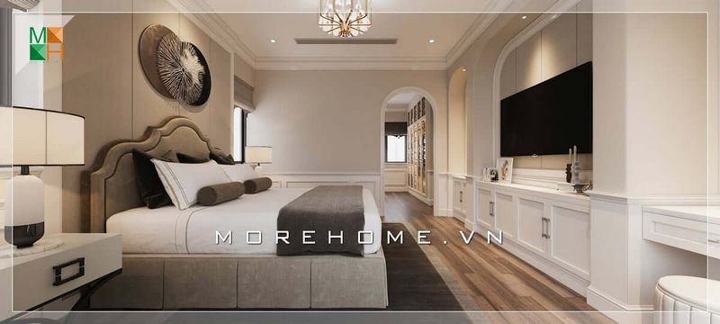 Nhiều người ước mơ có một không gian phòng ngủ rộng rãi với nhiều tiện nghi, nổi bật là chiếc giường tân cổ điển với cách bố trí nội thất khoa học và các ngăn nắp.